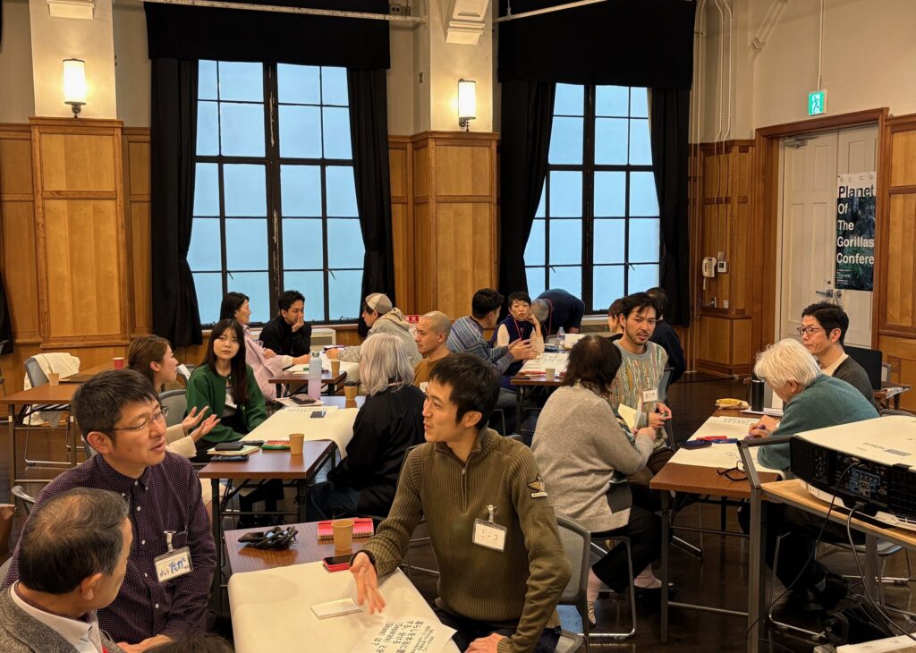 山極壽一所長によるインスピレーショントーク「人類の学びの歴史-ゴリラから見た可笑しな人間社会」講演後、参加者は4つの分科会(テーマ)に分かれグループごとにディスカッションを行いました。