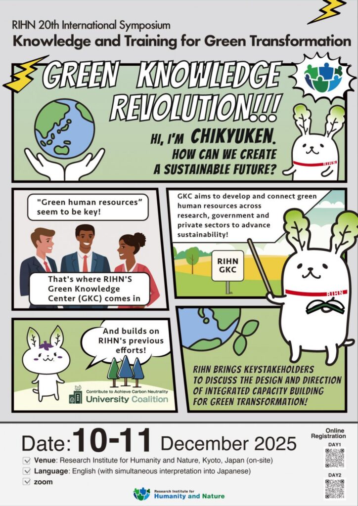 2025年12月11日、第20回地球研国際シンポジウム「Knowledge and Training for Green Transformation(グリーン社会変革に向けた知識と人材育成)」が地球研講演室で開催され、グリーン・トランスフォーメーションの実現に向けた人材育成の設計や方向性、今後の展開について発表が行われました。